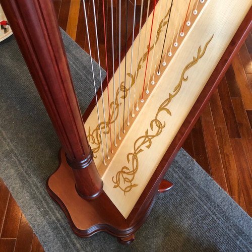 The Ana Harp distinguishes itself from the other more traditional Celtic harps both by the way it looks and the spacing between the strings which brings it closer to a pedal harp in sound. This harp is an excellent choice both for students who are thinking of progressing to the pedal harp and for harpists who wish to play a lever harp but achieve a sound similar to a small pedal harp. The Ana comes with a cover, tuning key and a 3-year limited warranty.