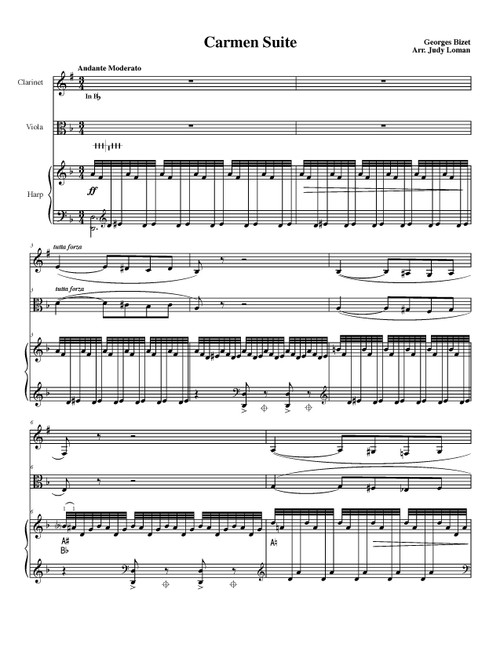 Description Bizet, Georges: Carmen Suite for Harp, Flute or Clarinet, and Viola. Arranged by Judy Loman