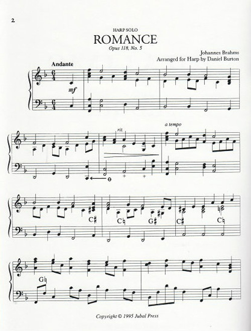 Brahms, Johannes: A Brahms Album, arranged for harp by Daniel Burton. Jubal Press/Vanderbilt Music edition. (Intermediate)