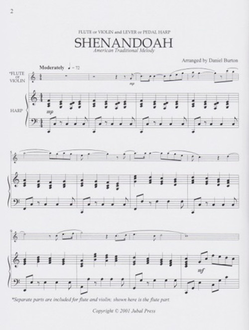 Burton, Daniel (arranger): Love Songs for Flute or Violin and Lever or Pedal Harp. Includes score, flute, and violin parts. Jubal Press/Vanderbilt Music edition. (Intermediate) (Digital Download)