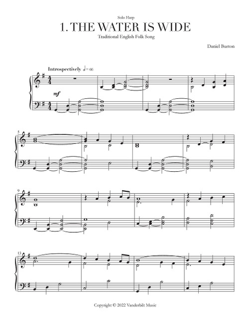The first volume in a series of retrospective collections of lyric folk songs arranged for pedal harp by Jubal Press editor/composer Daniel Burton. Volume 1 contains 17 hauntingly beautiful melodies from England, Scotland, Ireland, The Isle of Man, and Wales. Based on previously published material, the arrangements have been expanded with introductions, interludes, variations, and conclusions to comprise a 67-page publication appropriate for almost any occasion.