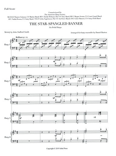 The Star-Spangled Banner for Six Harps, arranged by Daniel Burton. Includes score and six harp parts. (Digital Download)