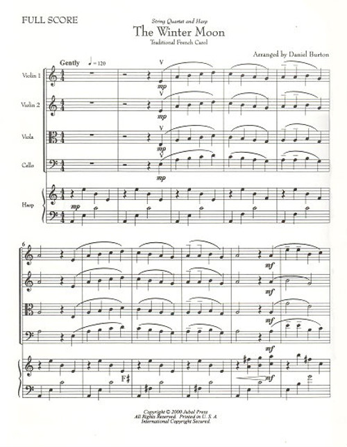 Burton, Daniel (arranger): The Winter Moon (Traditional French Carol) Arranged for Harp & Organ or Harp & String Quartet. Includes violin 1, violin 2, viola, cello, harp, and organ & harp parts and full score. Jubal Press/Vanderbilt Music edition. (Intermediate) (Digital Download)