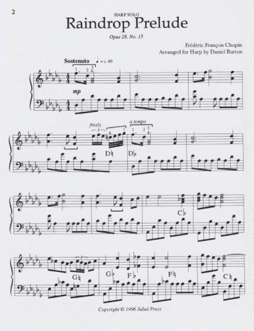Chopin, Frédéric François: Chopin for Harp, Volume 1, arranged for solo harp by Daniel Burton. Jubal Press/Vanderbilt Music edition. (Intermediate)