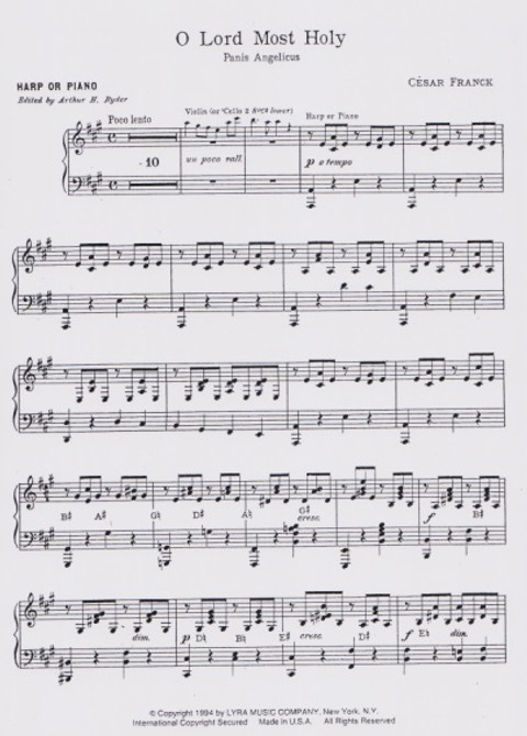 O Lord Most Holy (Panis Angelicus) for voice, organ, cello (or violin) and harp, by Cesar Franck. Score and Parts. (Digital Download)