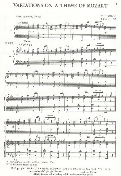 Description Glinka, Mikhail: Variations on a Theme of Mozart. Lyra Music edition. (Intermediate-Advanced)