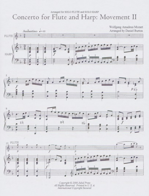 Mozart Concerto for Flute and Harp, 2nd Movement. (Int) Arranged by Daniel Burton. (Digital Download)
