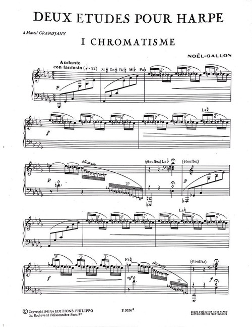 Deux Etudes for harp by Noel-Gallon