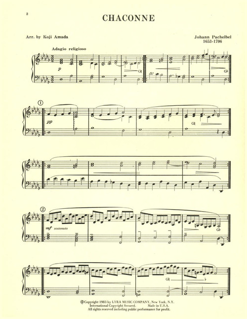 Chaconne by Johann Pachelbel, in an arrangement for harp solo by Koji Amada.
