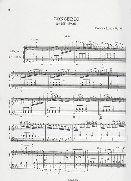 Parish Alvars, Elias: Concerto, Opus 98. Item includes harp part and separate piano reduction. (See scanned images of first pages of both parts, below.) Lyra Music edition. (Advanced)