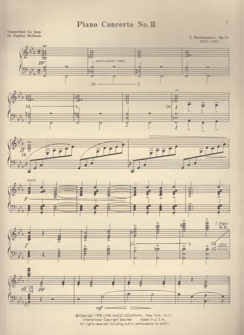 Rachmaninoff, Sergei: Piano Concerto No. 2, Op. 18. Transcribed for harp by Daphne Hellman. Lyra Music edition. (Advanced)