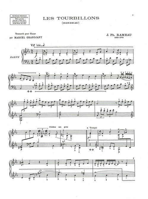Les Tourbillons (Rondeau) by J.P. Rameau. Arrangement for solo harp by Marcel Grandjany.