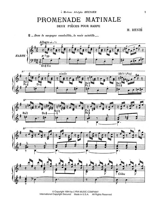 Quick view Add to Cart Renie: Promenade Matinale: Au loin, dans la verdure, for Harp solo MSRP: $12.00