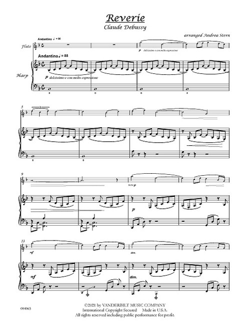 Debussy Reverie for flute and harp arranged by Andrea Stern. Flute part is included.