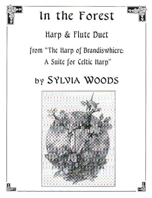 The music for "The Harp of Brandiswhiere" was composed by Sylvia Woods. When her husband Tom first heard her play one of the pieces, he created a character and a story to accompany it, and thus, Brandiswhiere was born. "The Harp of Brandiswhiere" musically tells the story of an invisible island where it is always Spring. Harp players are the only visitors to this lovely island; they play the correct tune and are immediately transported there. The piece entitled "In the Forest" tells of the lush beauty of this isle of Spring. As the suite progresses, an evil sorcerer casts a spell of Winter upon the island, which, according to legend, will destroy it. Our hero, a young harper named Brandiswhiere, sits with his harp in a clearing in the middle of the blizzard, and plays the Spring back. And so Brandiswhiere and his harp save the isle of Spring. The grateful people of the island rejoice, and the final piece